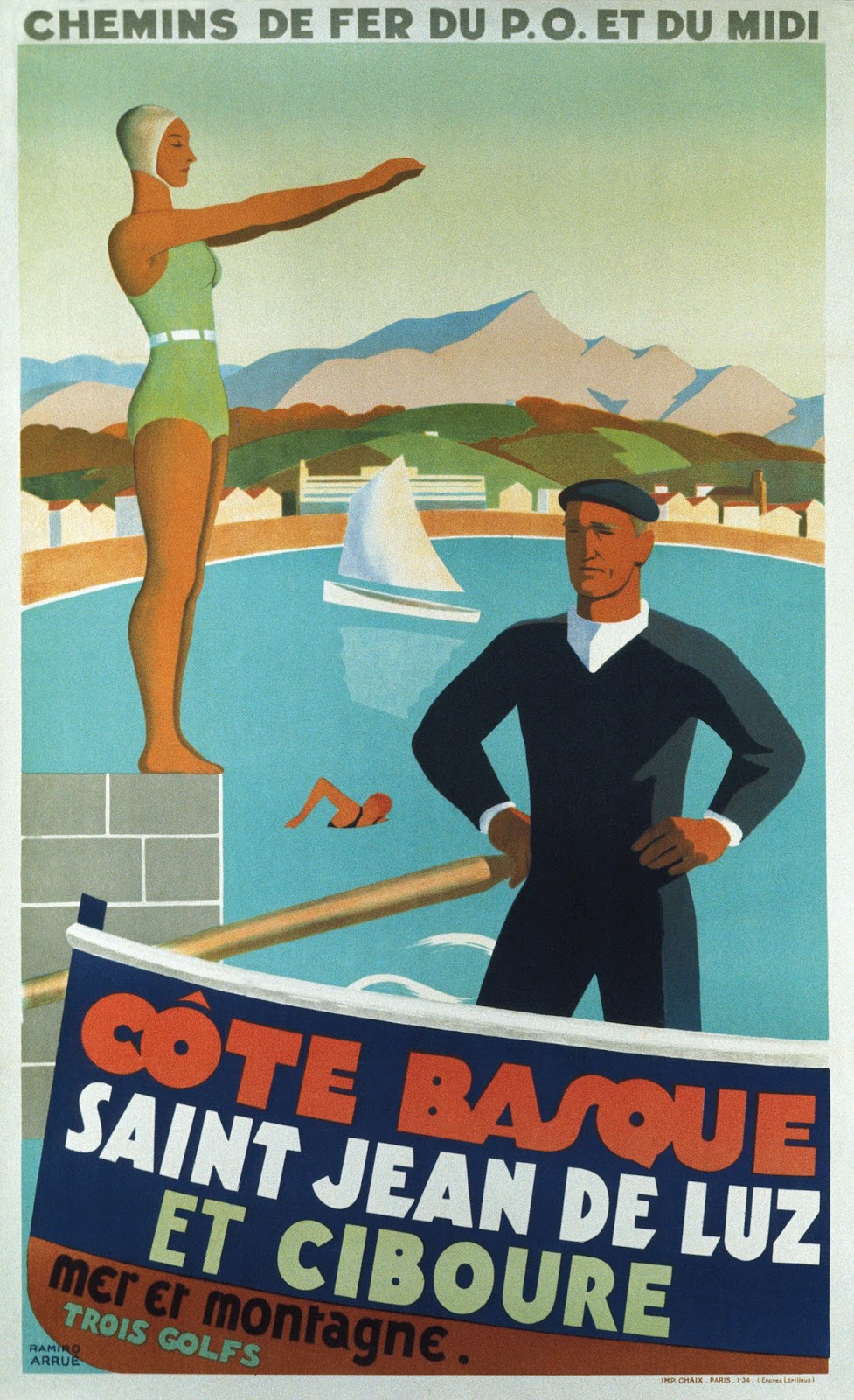 Affiche Luchon Super Bagneres Chemin De Fer Du Midi 1932 R Sonderer