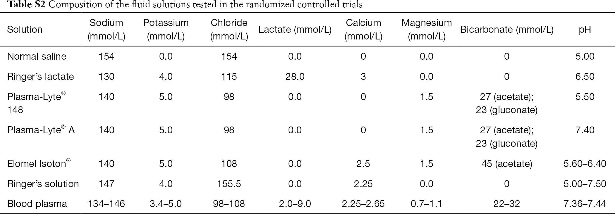 Table 1 From Ab Normal Saline And Physiological Hartmann S Solution